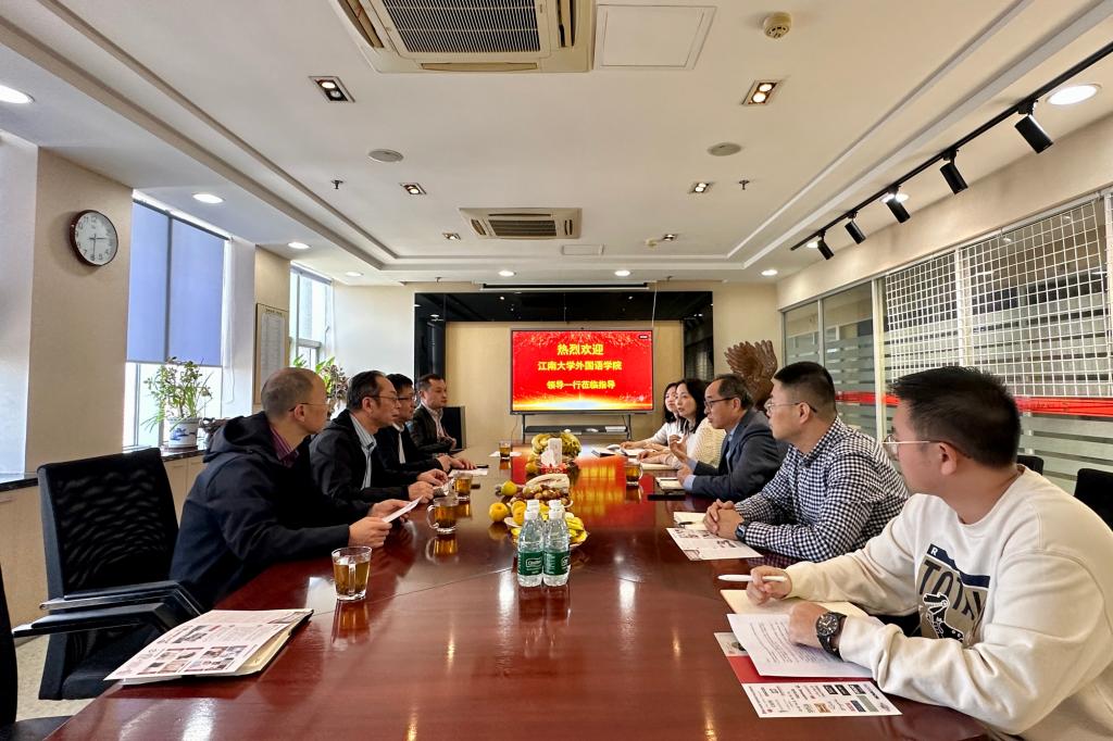 双方举行了座谈交流。毛文明对外国语学院一行的到访表示热烈欢迎。李莉介绍了公司的基本情况、核心业务板块及海外市场布局。她指出,随着公司跨境业务的不断拓展,对具备良好外语能力、跨文化沟通素养及国际贸易知识的复合型人才需求日益迫切,期待与外国语学院建立长期稳定的人才合作关系。方文开就学院的发展历程、学科建设、专业特色及人才培养成效作了介绍。他表示,学院注重学生语言能力与实践能力的融合发展,希望以此次走访为契机,推动双方在学生实习实践、就业招聘、跨文化培训等方面开展深度合作。