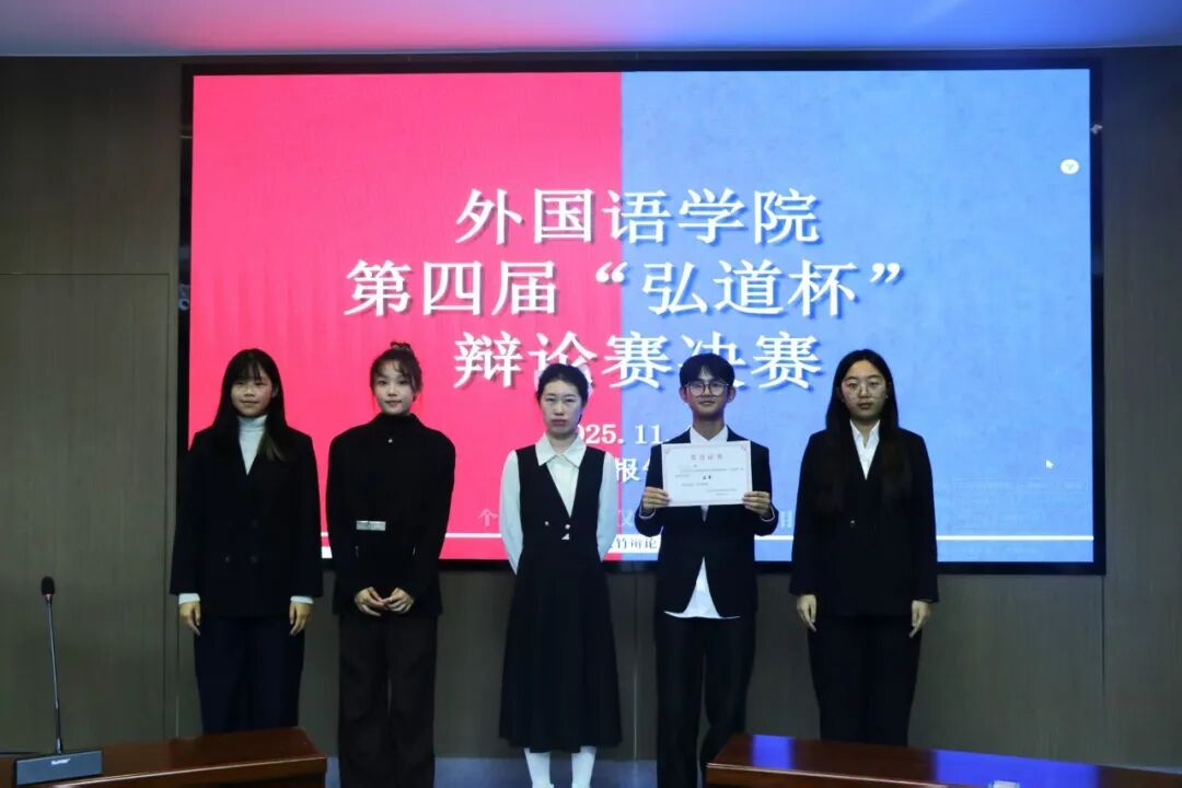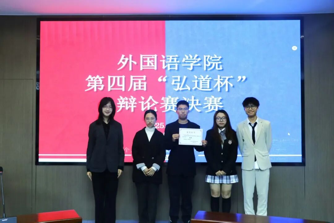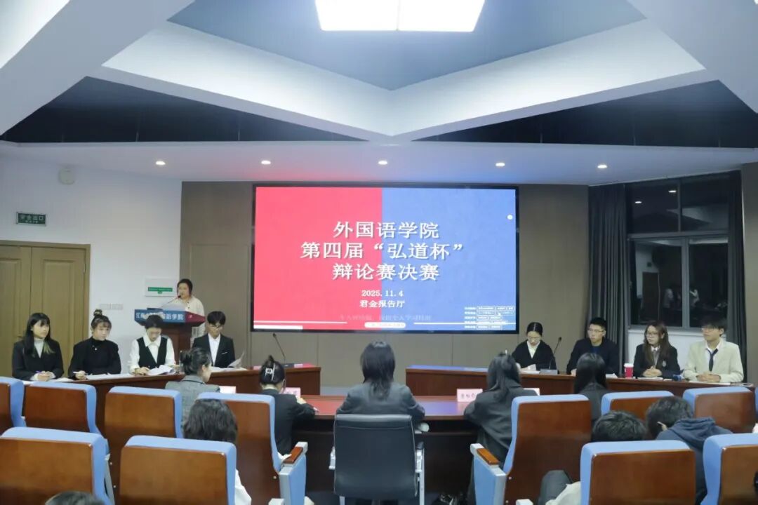 为丰富校园文化生活,锤炼学生的逻辑思维与语言表达能力,培育思辨素养与人文情怀,11月4日晚,外国语学院在君金报告厅成功举办第四届“弘道杯”辩论赛决赛。本次活动面向全校学生,由外国语学院学生会综合发展中心与院辩论队联合承办。