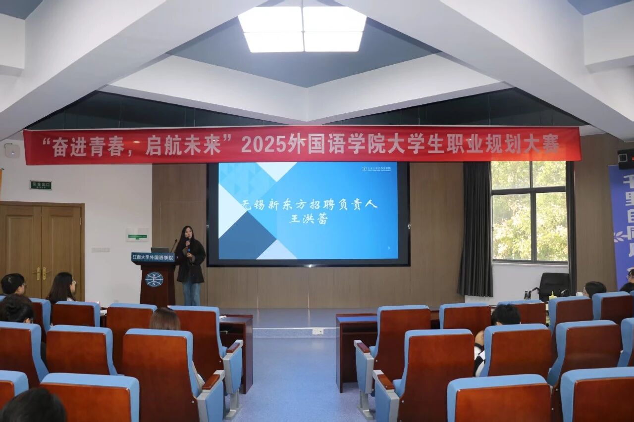 为强化大学生生涯教育与就业指导实效,深化其职业规划认知,引导学子提前筑牢就业基础,并以全新择业视角开拓就业格局,推动实现更高质量、更充分的就业,10月29日下午,外国语学院在君金报告厅举行了大学生职业规划大赛决赛。无锡新东方招聘负责人王洪蕾,外国语学院分团委书记顾海星,外国语学院辅导员查博奕出席了本次活动并担任评委。