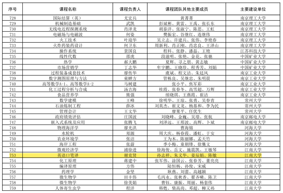 近日,教育部发布了《关于公布第三批国家级一流本科课程认定结果的通知》(教高函〔2025〕9号),外国语学院《英语口笔译》课程入选一流本科课程。该课程团队负责人为谢竞贤副教授,团队成员包括孙志祥教授、朱义华副教授、姜辰娟老师和陈敏老师。